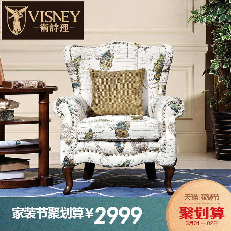 卫诗理家具简奢实木印花布艺沙发50006Y6